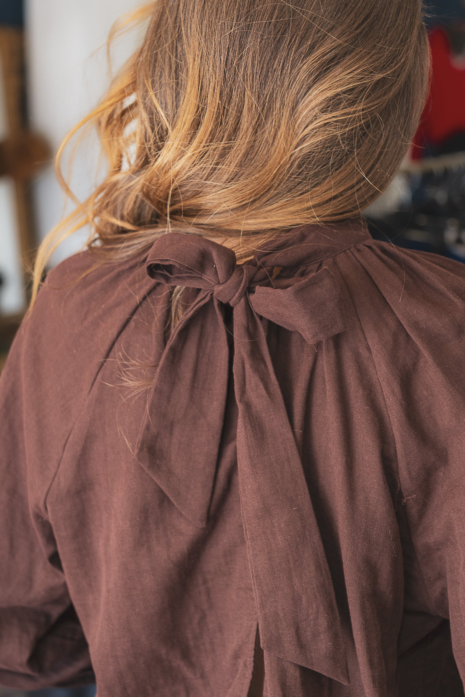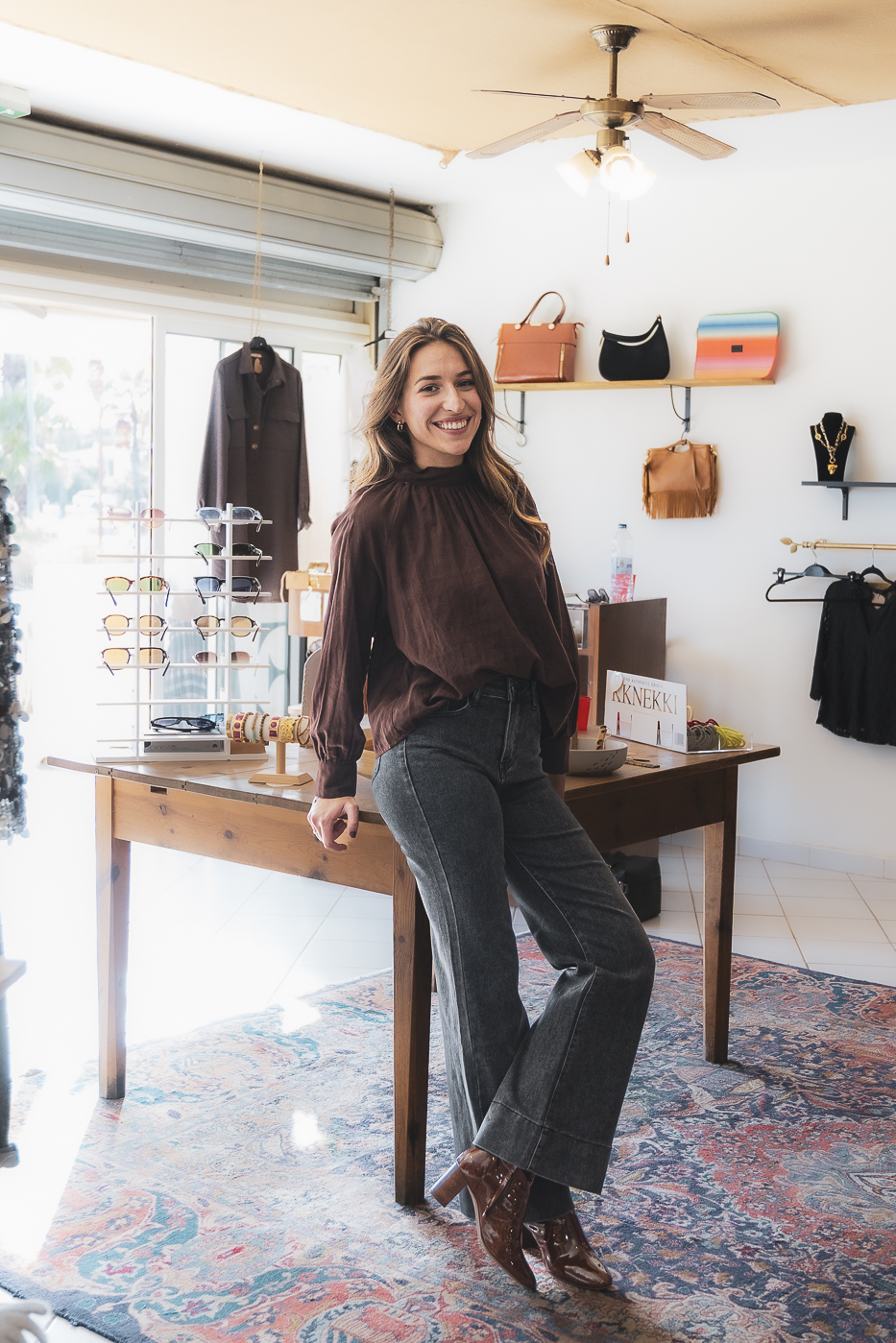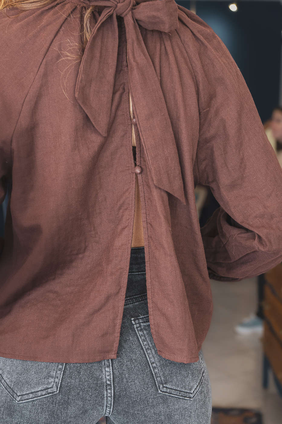 C’est la petite blouse crush de la saison avec son dos ouvert discrétement. Elle est chez Elseme et on l’adore.