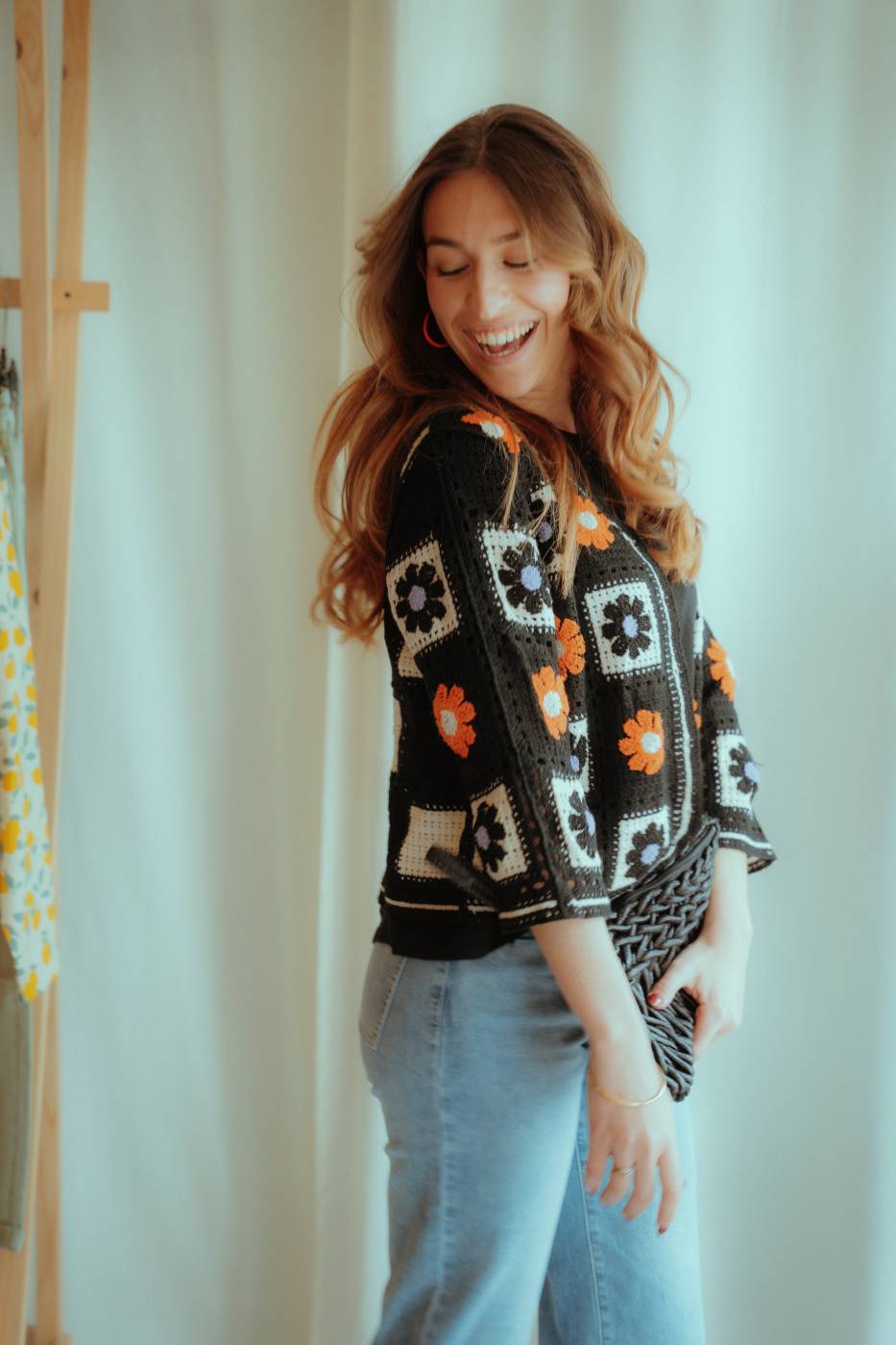 Optez pour l’élégance bohème avec ce joli cardigan délicatement ajouré. Il accompagne vos soirées d’été un peu fraîche avec style.