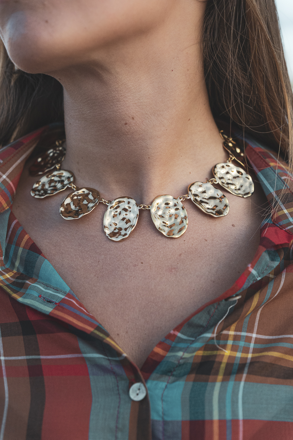 Ce joli collier est constellé de pastilles avec effet martelé.