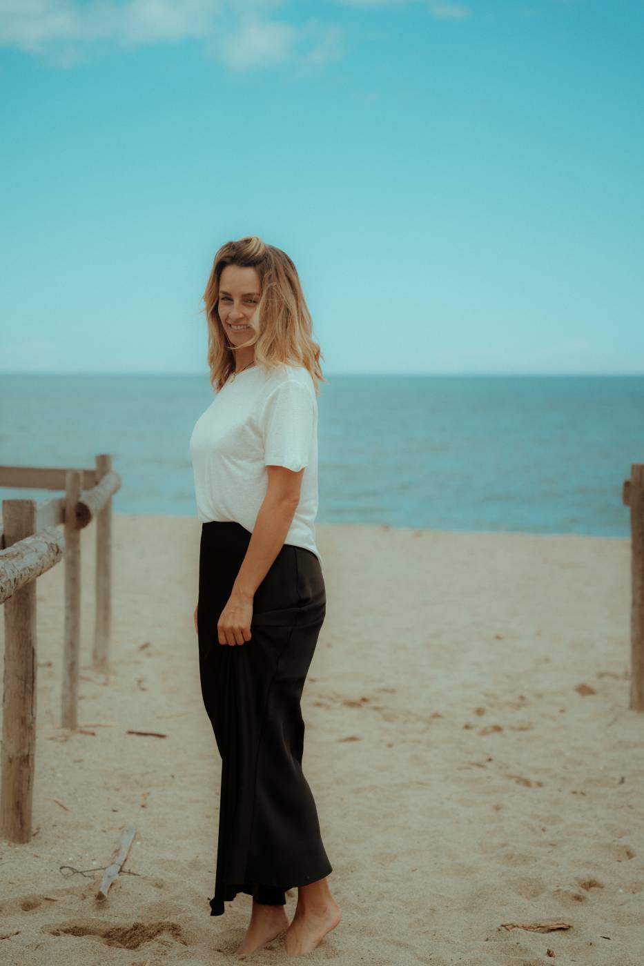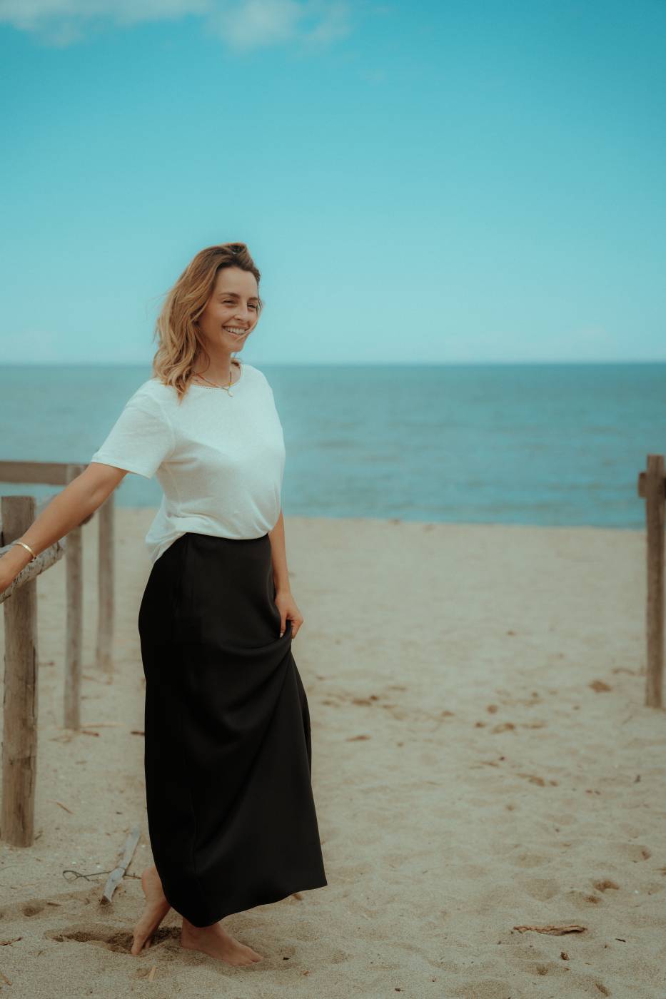 Maxine est le basique dont on a toujours besoin en jocker ! Elle est longue version midi pour les grandes. Elle plombe bien et son tissu est vraiment agréable. Elle est à marier avec tous les tee-shirts pour un look plus cool.