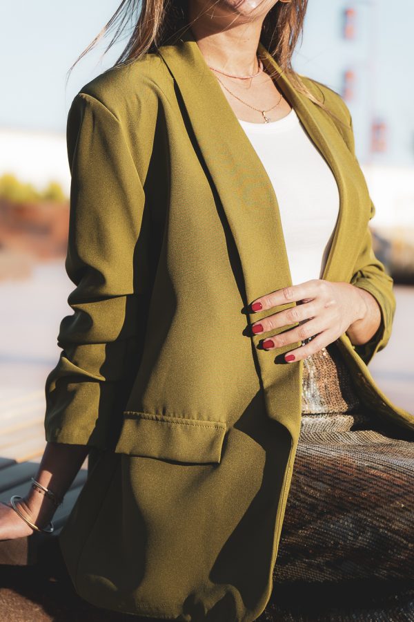 Veste avec manches retroussées entièrement doublée de couleur pistache.